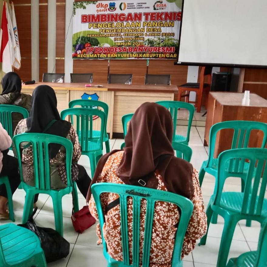 Banyuresmi, [20/08/2025] – Tim Penggerak PKK Desa Banyuresmi, Kecamatan Banyuresmi, Kabupaten Garut, menyelenggarakan kegiatan Bimbingan Teknis (BIMTEK) Pengelolaan Pangan Pengembangan Desa Beragam, Bergizi, Seimbang, dan Aman (B2SA).