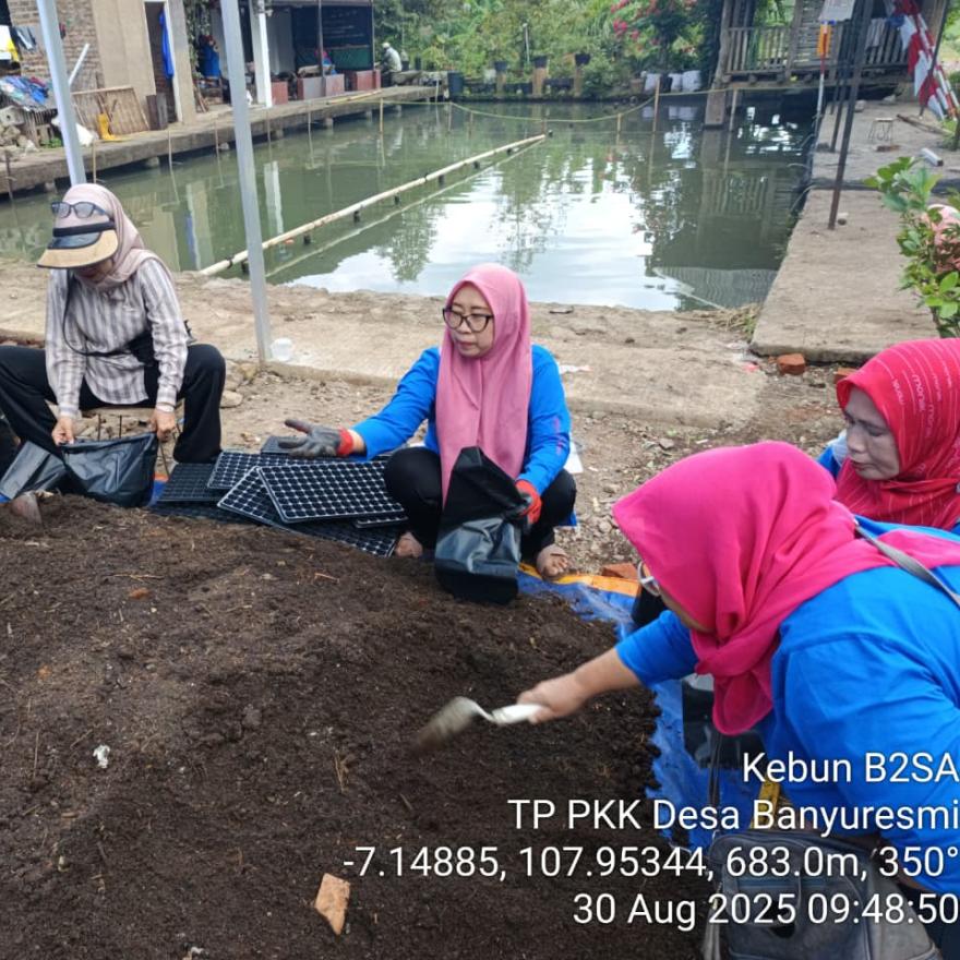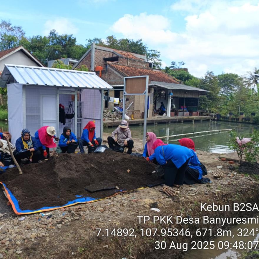 Banyuresmi, 30 Agustus 2025 – Tim Penggerak PKK Desa Banyuresmi terus berinovasi dalam mendukung ketahanan pangan keluarga melalui program kerja Kebun B2SA (Beragam, Bergizi, Seimbang, dan Aman). Program ini dilaksanakan dengan melibatkan kader PKK dan masyarakat desa sebagai upaya menciptakan sumber pangan sehat, murah, dan berkelanjutan.